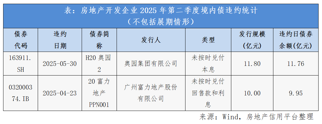 根据报告统计,2025年第二季度全国共有2家房地产债券发行人确认境内信用债券实质违约或触发交叉条款(不包括展期情形),涉及债券2只,同比减少60%,环比2025年**季度持平;违约涉及债券余额21.709亿元,同比减少45.29%,环比2025年**季度增加12.48%。