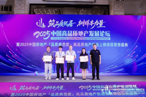 中建壹品投资发展有限公司开发的“中建壹品·外滩源著”;杭州平成置业有限公司开发的“保亿·雲隐星润府”;郑州璟程置业有限公司开发的“中建·泊悦府”;长沙恒诚业房地产开发有限公司开发的“君樾洋湖”;广西天昌投资有限公司开发的“天昌·青山府”;甘肃万华慧居智能科技有限公司开发的“令牌·未来时光”;中建壹品投资发展有限公司开发的“壹品兴创·御璟星城元启”;宁夏畅顺通物流置业有限公司开发的“吉泰云锦东方”;成都兴城人居地产投资集团股份有限公司开发的“兴城人居·怡湖春晓”;成都成华国投开发的“云栖·璞璟”;高真处长作为特邀嘉宾代表组委会上台为获奖项目进行了授牌。