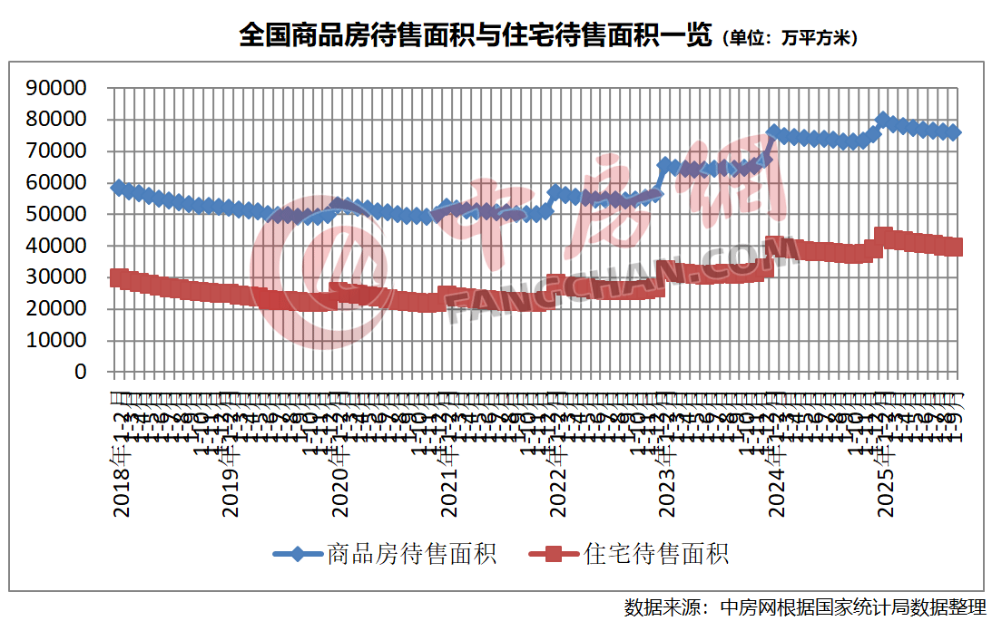 截至10月末,商品房待售面积75606万平方米,比9月末减少322万平方米,今年以来连续八个月减少。其中,住宅待售面积39645万平方米,减少292万平方米。