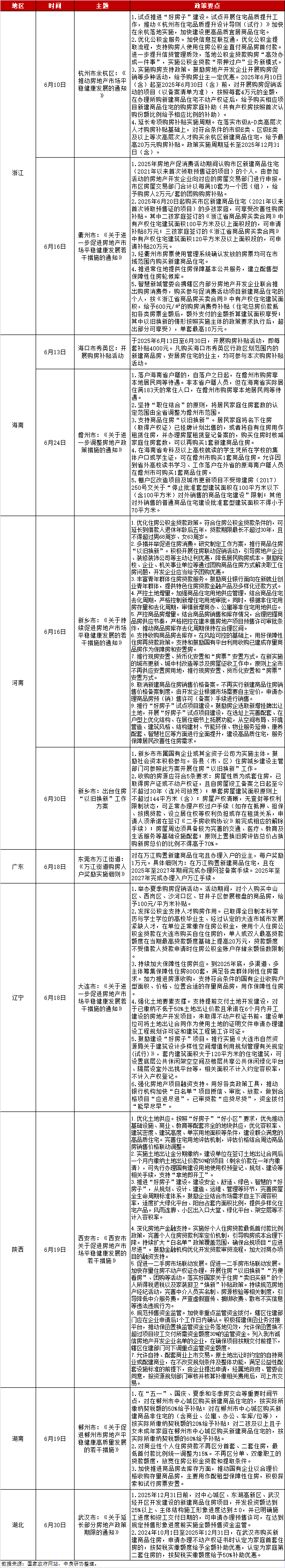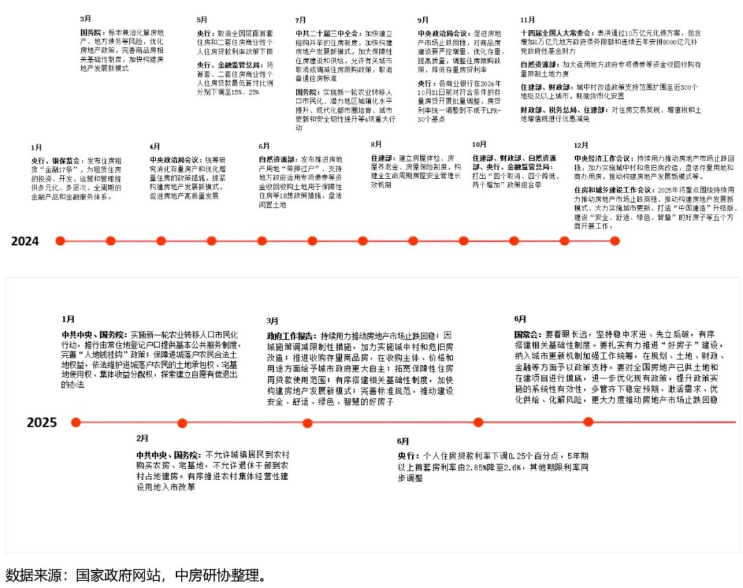2025年6月,我国房地产政策环境延续宽松。中央层面,国常会定调要进一步优化现有政策,提升政策实施的系统性有效性,更大力度推动房地产市场止跌回稳;中共中央、国务院发文支持各地统筹资金渠道,加大保障性住房供给,引导支持社会力量运营长期租赁住房等,进一步释放政策加力的积极信号。