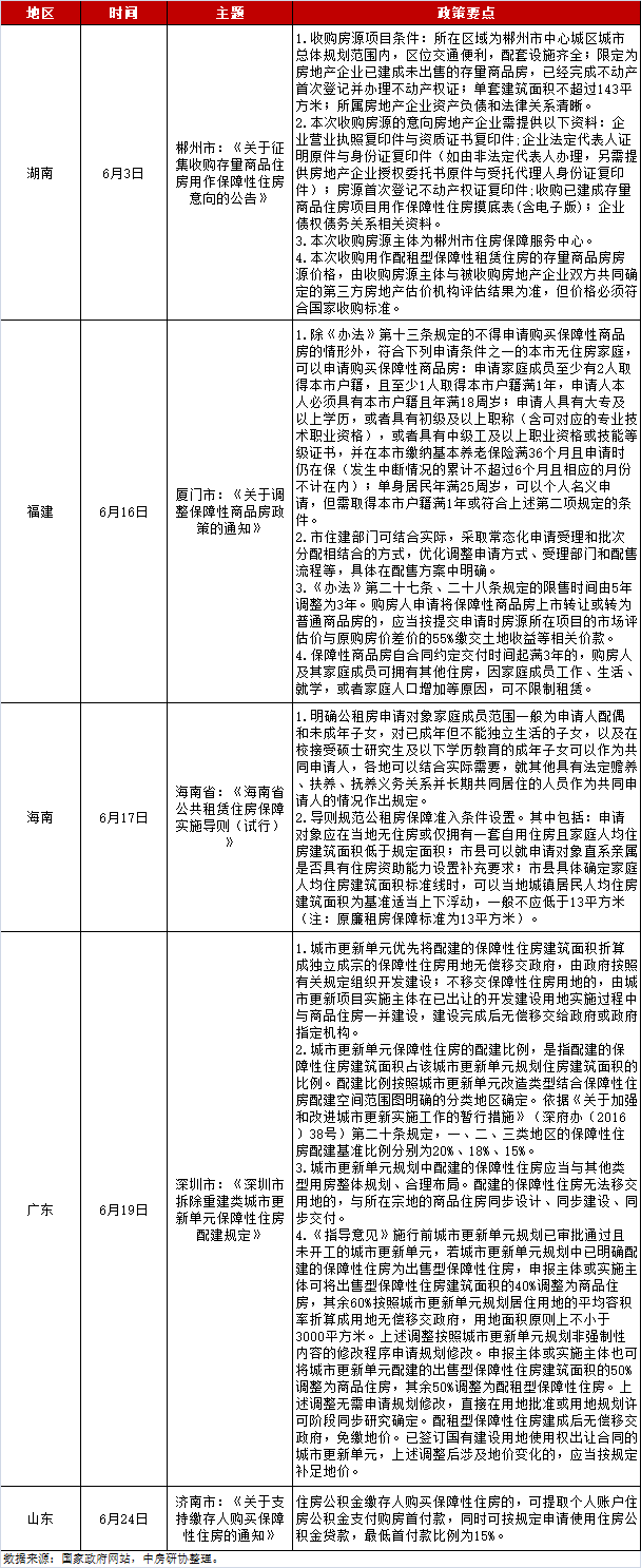 中性政策主要涉及保障性住房规划建设和管理。典型代表有:厦门调整保障性商品房政策,明确保障性商品房申请条件、申请方式、受理部门、配售流程等内容;海南发布公共租赁住房保障实施导则,明确公租房申请对象家庭成员范围一般为申请人配偶和未成年子女,并规范公租房保障准入条件设置;深圳发布拆除重建类城市更新单元保障性住房配建规定,明确城市更新单元规划中配建的保障性住房应当与其他类型用房整体规划、合理布局,配建保障性住房与所在宗地的商品住房同步设计、同步建设、同步交付等。
